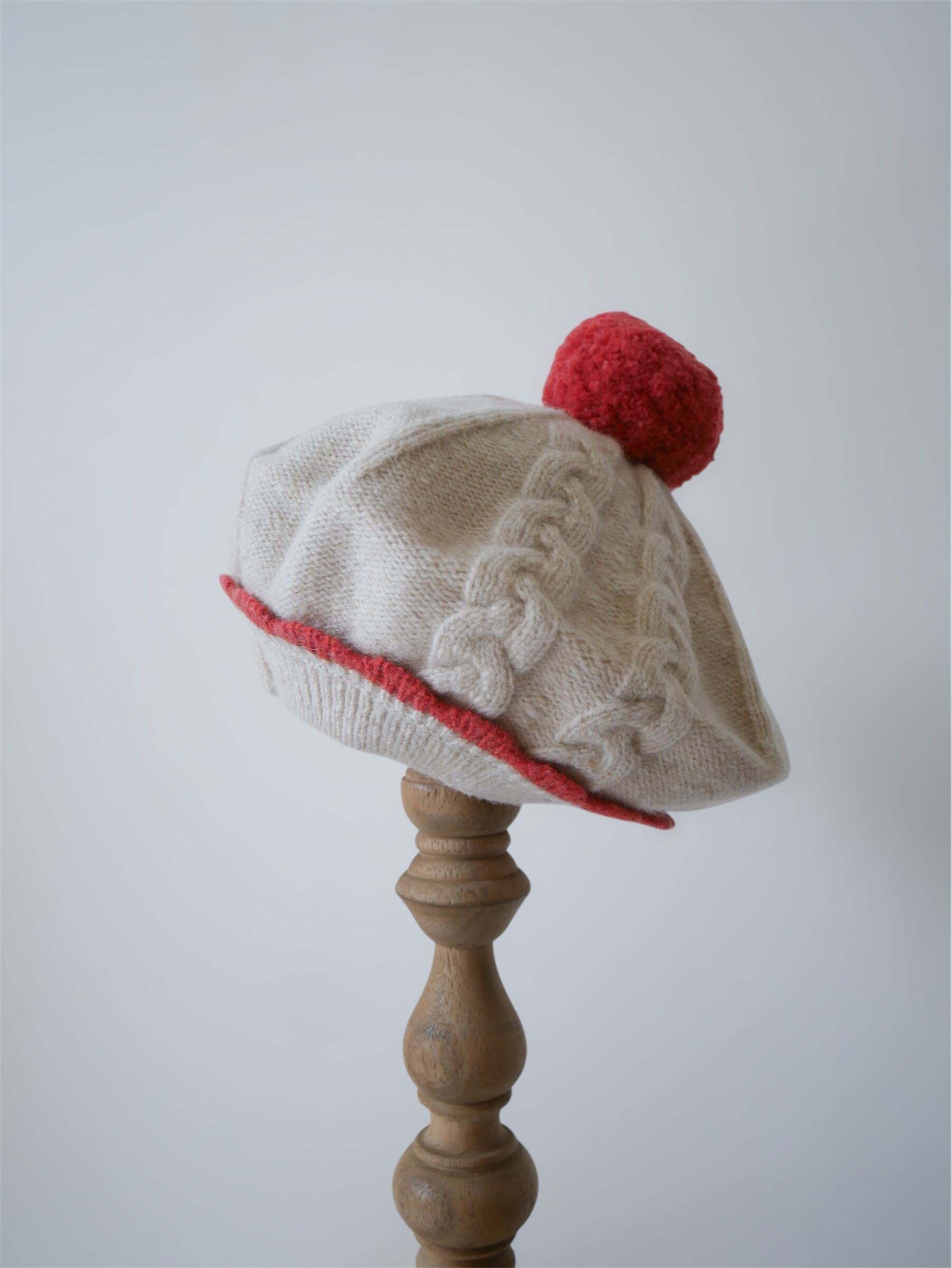 やわらかな赤が印象的な、クラシカルで少し甘さのあるベレー帽。