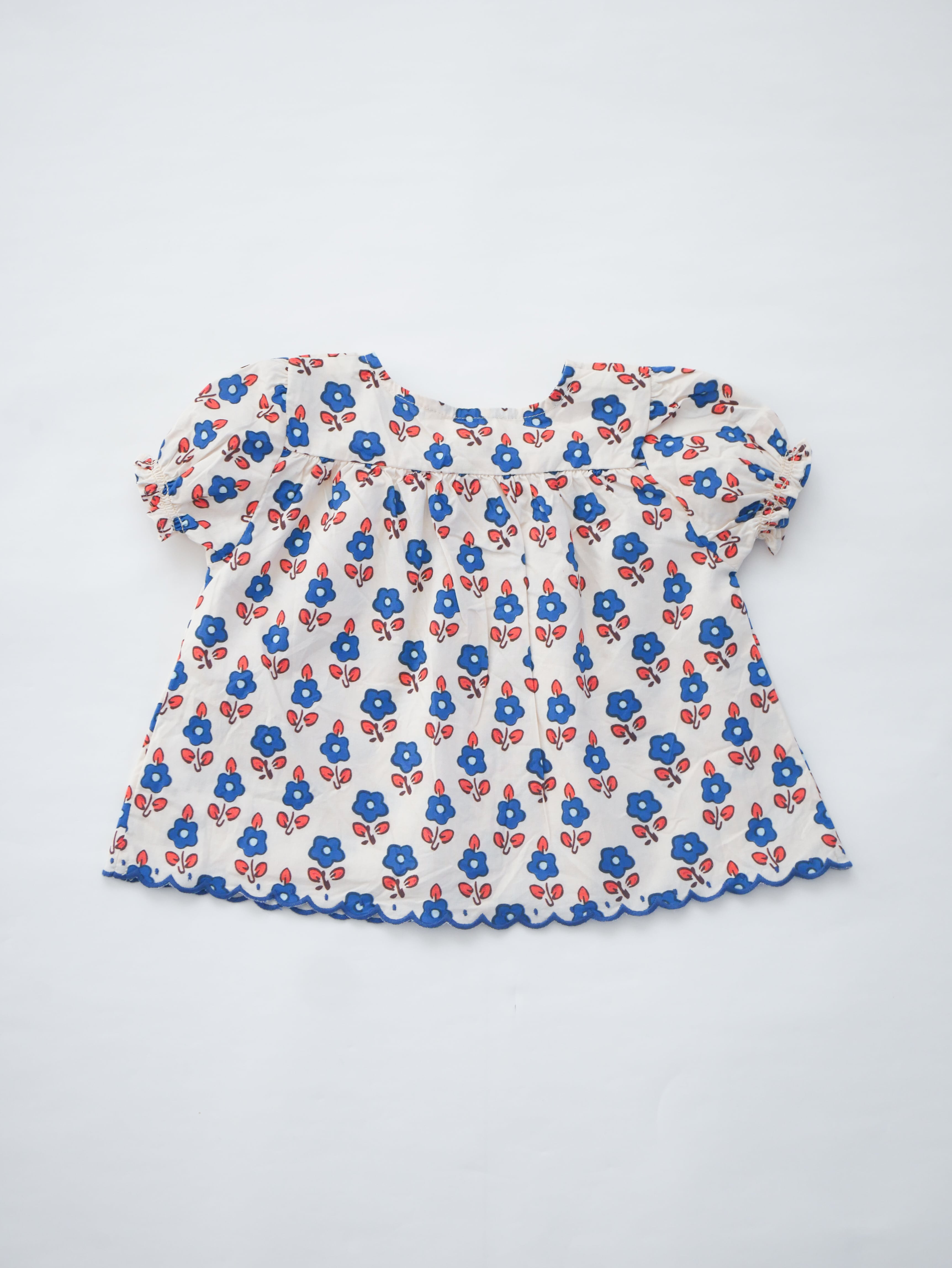 ノスタルジックなフラワープリントが印象的なベビーブラウス。