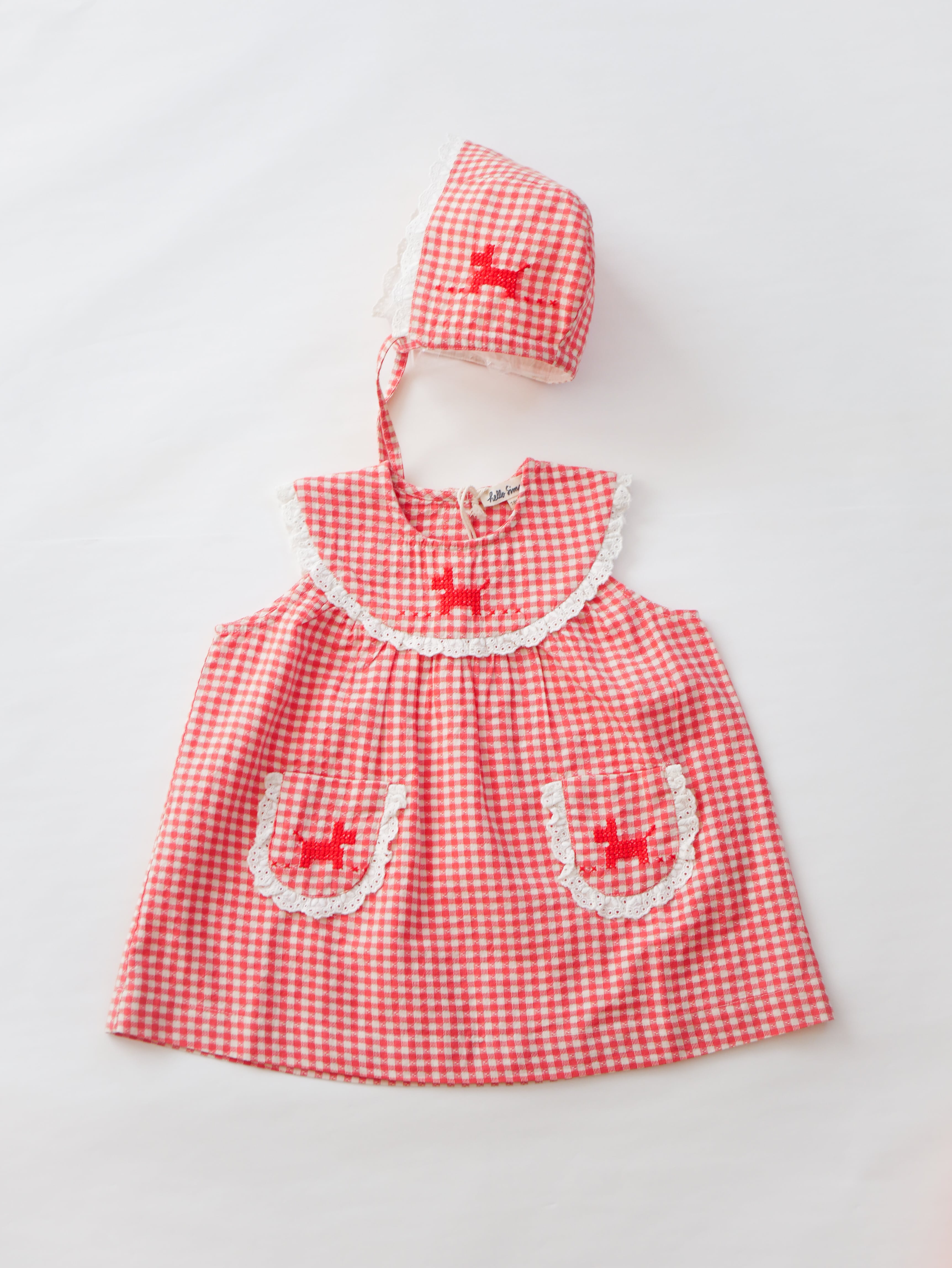 コットンレースのトリムがぬくもりあるノスタルジックな雰囲気を纏うベビードレス。