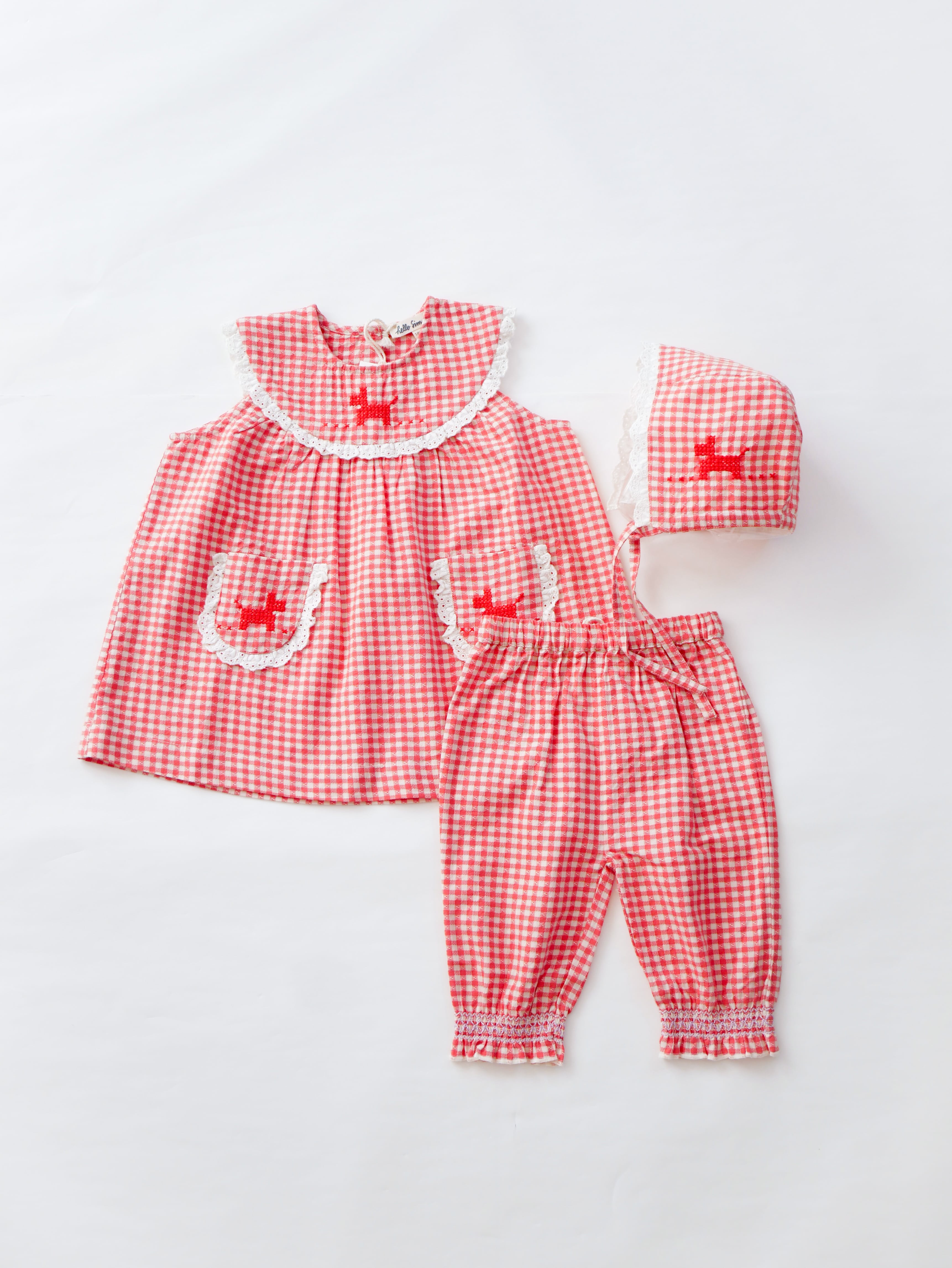 柔らかなレッドカラーのギンガムチェックに、